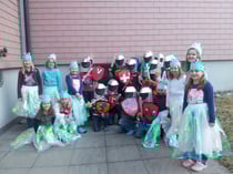 Die Burgfräuleins und Ritter der 3. / 4. Klasse feierten mit der Guggenmusig Schonbachgusler in Marbach ihren 25. Geburtstag. Zuerst verteilten die Schülerinnen und Schüler Süssigkeiten an die Umzugszuschauer. Anschliessend gaben die Schonbachgusler und die Äntegugger aus Escholzmatt ihr Können zum Besten. Nach dem Umzug ging die Geburtstagsfeier im Gemeindesaal weiter, wo die 3. / 4. Klasse ein kleines Theater aufführte. Der ängstliche Ritter Eduard hatte vor lauter Fasnacht doch tatsächlich seinen 25. Geburtstag vergessen. Die anderen Ritter und die hübschen Burgfäuleins sangen ihm anschliessend ein Ritterlied und tanzten mit grosser Freude. Spass hatten die Kinder ebenfalls an ihrem Preis, einer Tüte mit leckeren Süssigkeiten. Zwischen den Darbietungen liessen sich die Schülerinnen und Schüler schminken, mit dem Tambourmajor fotografieren oder assen Würstchen. Mit dem Ballontanz ging ein fröhlicher Fasnachtsnachmittag zu Ende. Die Klasse bedankt sich bei den Schonbachgulsern herzlich für die Organisation des Anlasses, für die Unterhaltung und den feinen Preis. Wir freuen uns bereits aufs nächste Jahr.