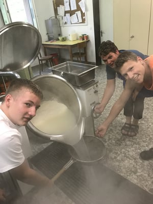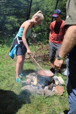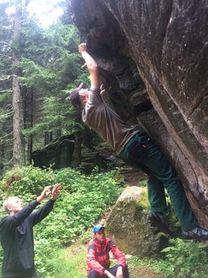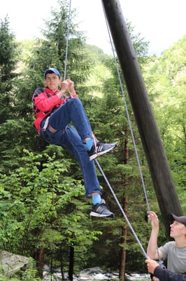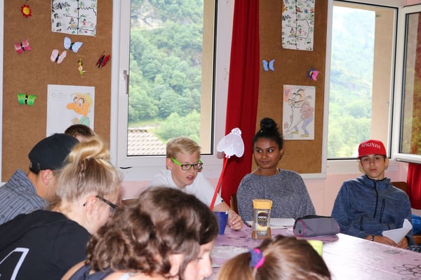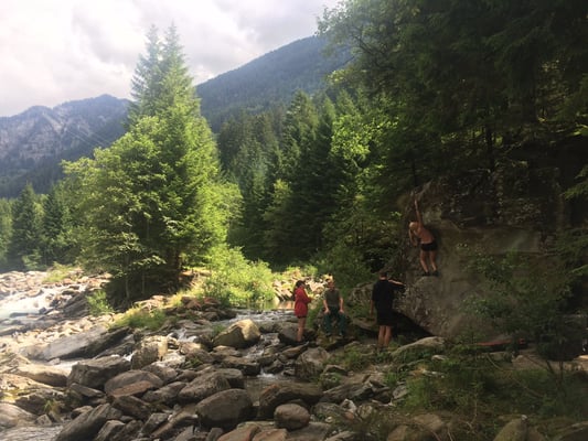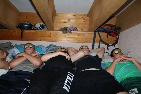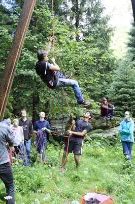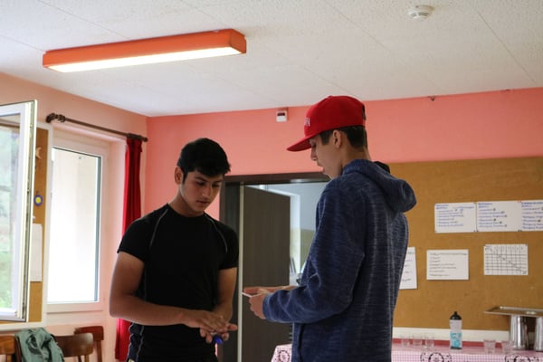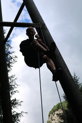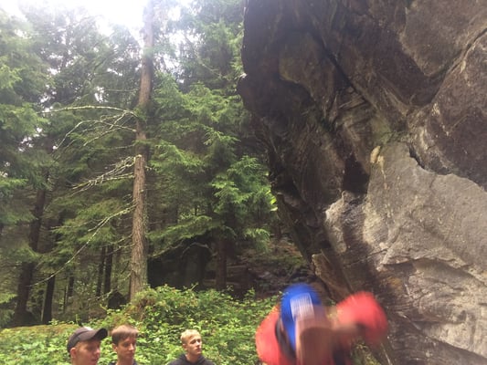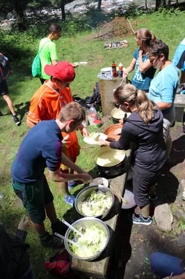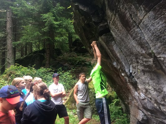 Heute Morgen haben wir zum ersten Mal Baguette bekommen. Diese waren mit Butter und Konfitüre sehr fein. Nach dem Essen wurden obligatorisch die Ämtli gemacht. Danach hatten wir Zeit um unsere Rucksäcke fürs Klettern und für die Schnitzeljagd zu packen. Das Bouldern auf dem feuchten Felsen war schwierig. Herr Stalder zeigte uns, wie man am besten auf den Stein klettert. Nebst dem Klettern durften wir auch den Aufstieg am fixen Seil ausprobieren. Wir mussten zuerst hinaufklettern und dann konnten wir uns abseilen. Die Aussicht dort oben an diesem Seil war toll. Am Mittag gab es drei verschiedene Risottos: Tomatenrisotto, Pilzrisotto und Käserisotto. Bei der Schnitzeljagd musste sich ein Team vor dem anderen verstecken und dabei Hinweise auf ihren Aufenthaltsort hinterlassen. Am Abend gab es feine Hamburger. Mit einem bunten Abend liessen wir das Lager ausklingen.