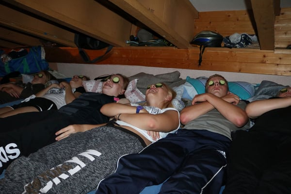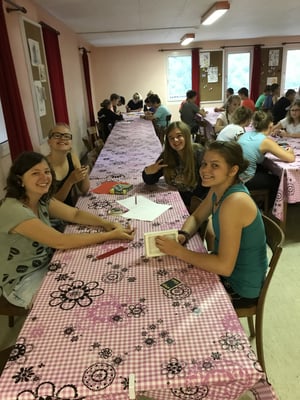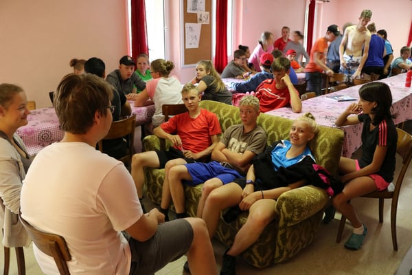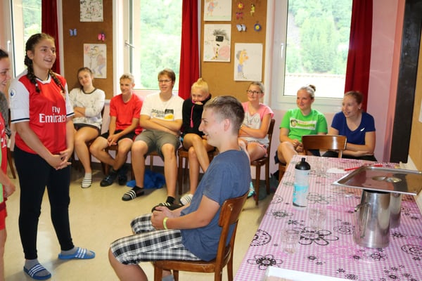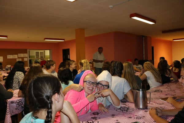 Nach der ersten Nacht in unserem Lagerhaus, wurden wir zu einem sehr feinen z‘ Morge eingeladen. Nach den gestrigen Strapazen der Veloanreise machten wir eine Spielturnier im und ums Lagerhaus. Alle sieben Gruppen gaben vollen Einsatz. Als Stärkung für den Nachmittag zauberte das Küchenteam so wie immer ein super Menü auf den Tisch: Bratwurst, Knöpfli und Salat. Am Nachmittag spielten wir weiter. Da jede Gruppe ein Spiel vorbereiten durfte, gab es von Theater, Stafette über Fussball bis hin zum Quiz alles anzutreffen - so konnten wir das Programm dem (Regen-) Wetter sehr gut anpassen. Wie bei einem Turnier üblich gab es natürlich auch am Schluss auch einen Gruppensieger, die Glücklichen Sieger Angela, Livia, Ramona, Valérie, Moises, Luca und Renad gewannen eine Glacé die mit dem Stolz noch besser schmeckte. Am Abend machten wir eine Schlagerparty, danach fielen wir alle müde in die Betten.