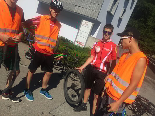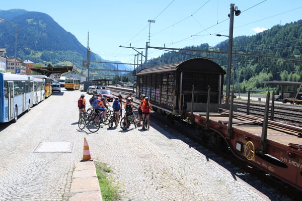 Um 7: 45 Uhr trafen wir uns zum Gepäck/ Velo verladen, auf dem Viehschauplatz. Eine Stunde später fuhren wir mit dem Car nach Airolo, von dort an fuhren wir mit dem Velo Richtung Selma. Wir durften zwischen drei verschieden langen Strecken wählen (lang, mittel und kurz). Die Fahrt war sehr abwechslungsreich und schön. Am Abend wurde für uns Spagetti gekocht und es war sehr lecker. Ein besonderer Dank geht an alle die mit uns mitgefahren sind, besonders an Fred Lötscher (Bild siehe unten).