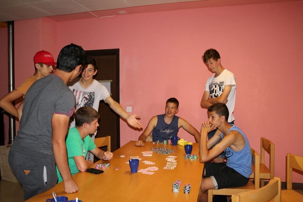 Für heute war eine grosse Wanderung geplant. Aber da das Wetter schlecht war, mussten wir improvisieren. Wir spielten verschiedene Spiele z.B. „Töggle, Ping Pong und Denkspiele, wie DRS 3 oder Lotto. Am Nachmittag war das Wetter besser. In der Trockenzeit unternahmen wir eine Wanderung vom Haus aus nach Bersach. Kurz nachdem wir wieder zurück waren, begann es wieder zu regnen. Am Abend gab es vier Ateliers, aus denen man auswählen konnte. Es gab Massagen, Werwölflen, Poker oder Ping Pong. Die Stimmung war am Abend super. Wir sangen noch Lieder und assen Kuchen. Der Tag war trotz Improvisation gelungen.