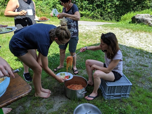 Aber dank der kühlenden Maggia und Programm "em Schatte nah" ertrugen die Schüler die Hitze und stimmten sich auf die kommenden Ferien ein ...