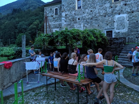 Die 8. Klassen fuhren (über den Gotthard mit den Velos) nach Aurigeno im Maggiatal ins Klassenlager. Der Wettergott meinte es gut - er lieferte nur Sonne und blauen Himmel. Entsprechend waren die Temperaturen hoch - auch in der Nacht ...